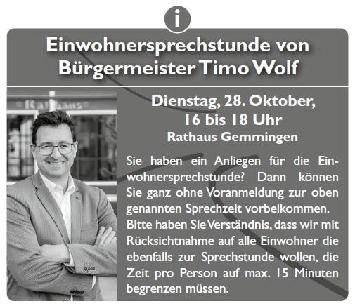 Dienstag, 28. Oktober 2025, 16 bis 18 Uhr, Rathaus Gemmingen