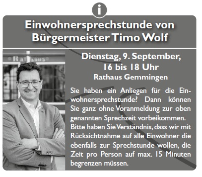 Dienstag, 28. Oktober 2025, 16 bis 18 Uhr, Rathaus Gemmingen