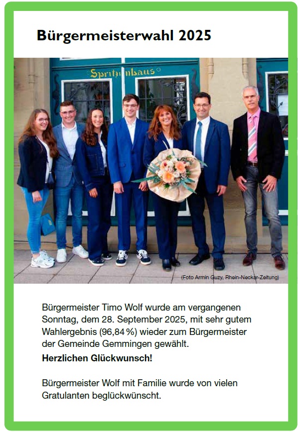 Die Gemeinde Gemmingen bedankt sich bei allen Wählerinnen und Wählern für die Wahlbeteiligung am vergangenen Sonntag.